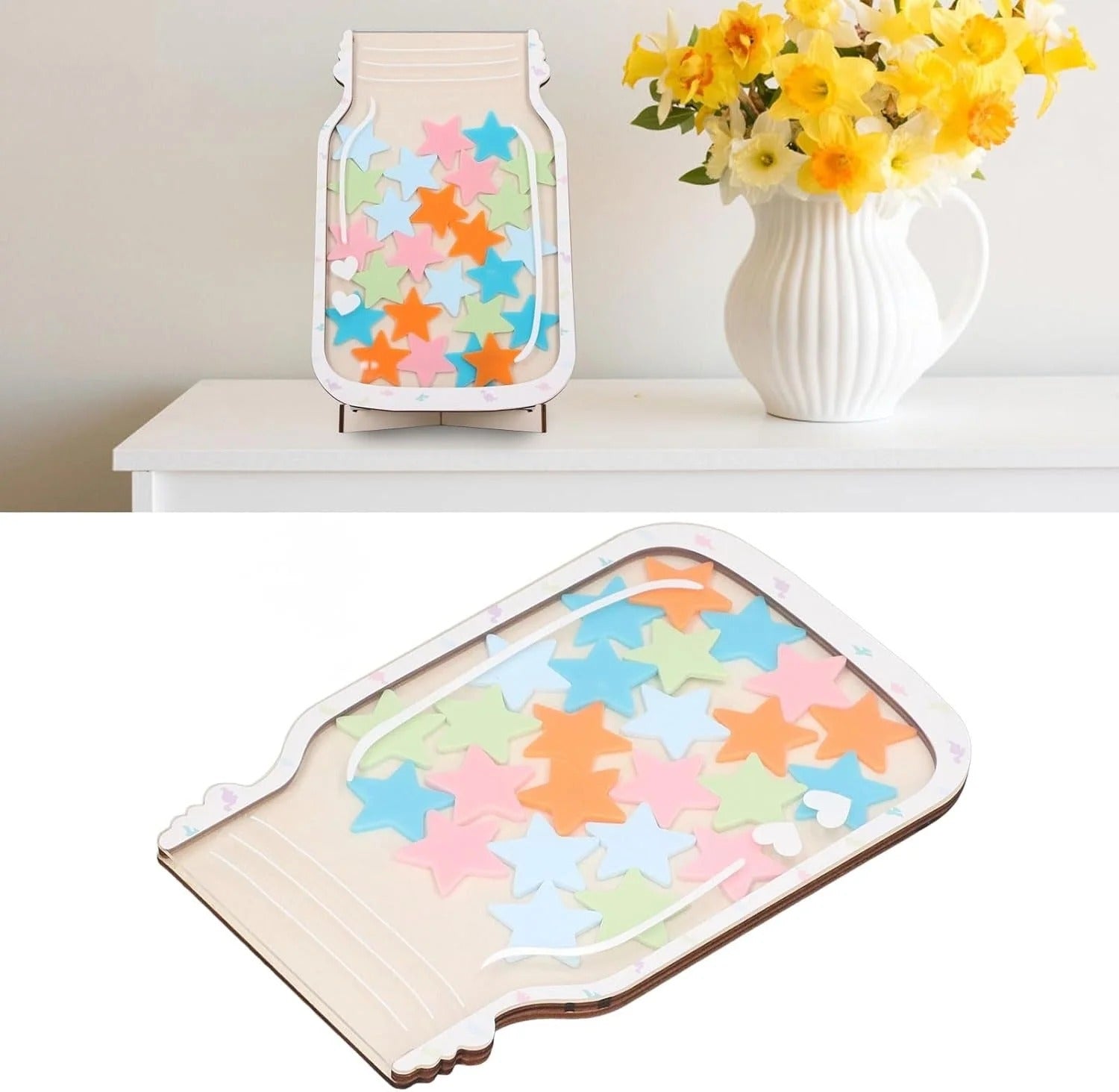 This jar features a beautiful and fashionable design that appeals to children, making them more engaged and excited. They can earn star and showcase their progress, helping them establish healthy daily habits and rewarding their positive behavior and responsible actions.