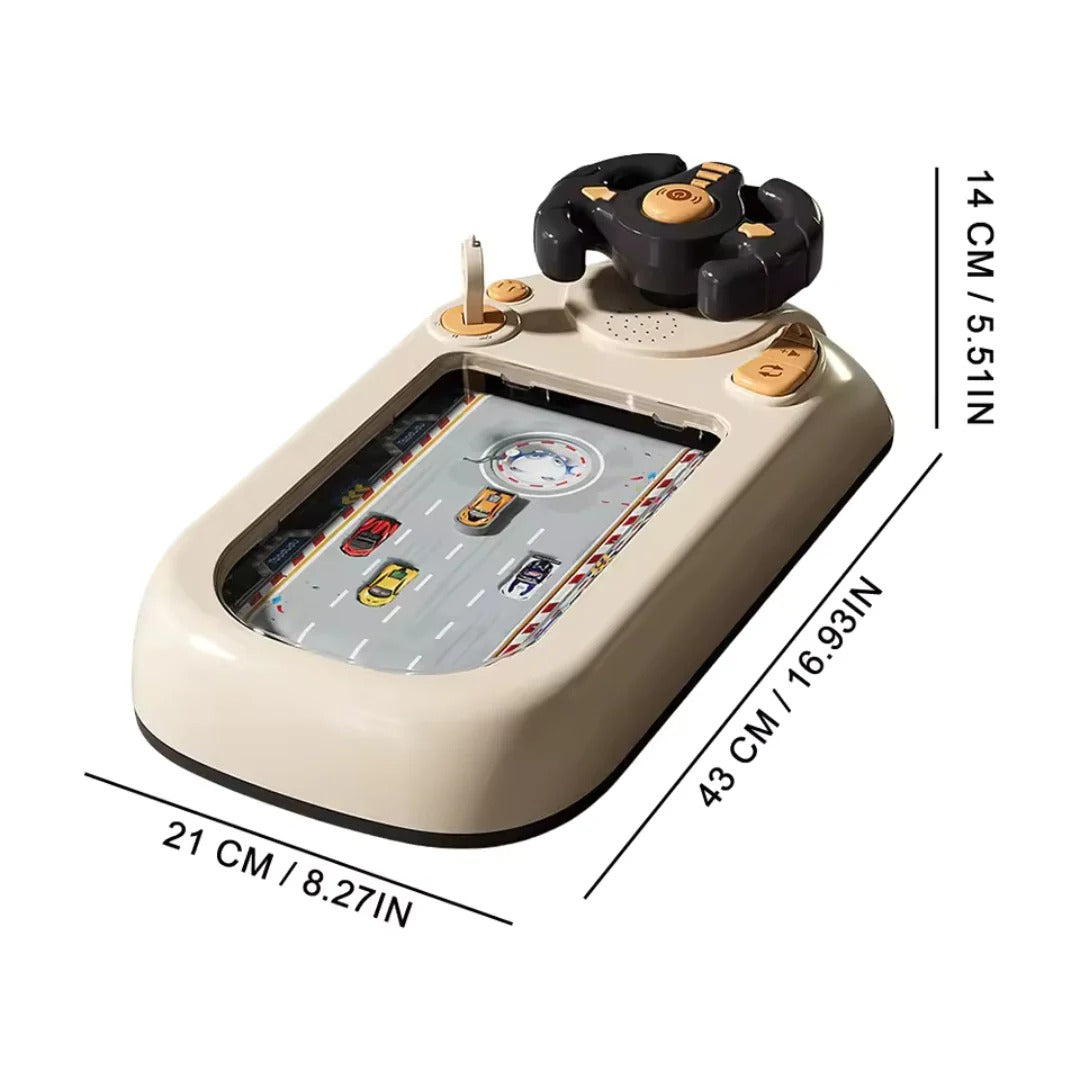 - Features: Interactive steering wheel, sound effects, light and motion elements